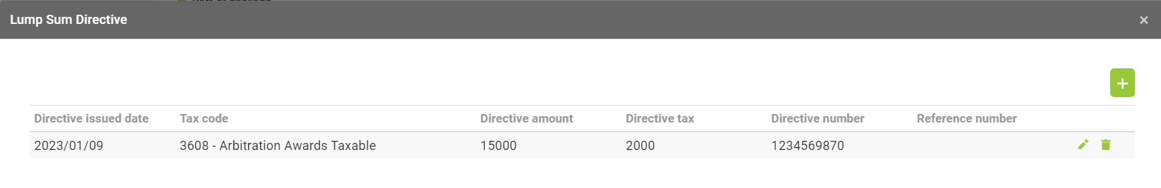 Navigate > Employee > Payroll Processing > Edit Payslip > Other Actions > Actions > Lump Sum Directive