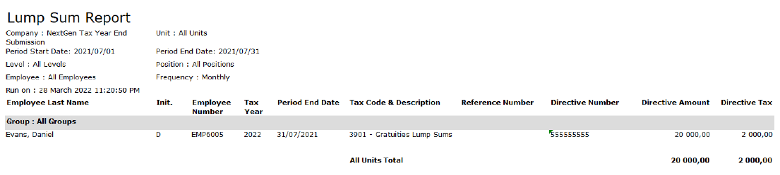 To verify the directive numbers for Lumpsum payments processed, the Lump Sum Report can be generated.