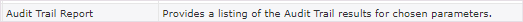 The Audit Trail Report provides an audit trail for selected user profiles and screens. By default, it will only generate information the for the user currently logged in to the system.