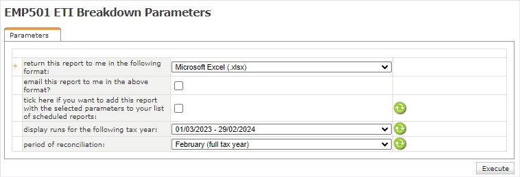 The EMP501 ETI Breakdown report can be downloaded under the Legislative report category on the Standard (Classic) tab on the Reports screen