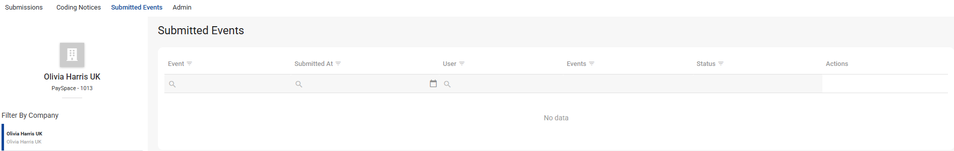 Submitted Events provide a summary of the details entered upon filing a submission.
