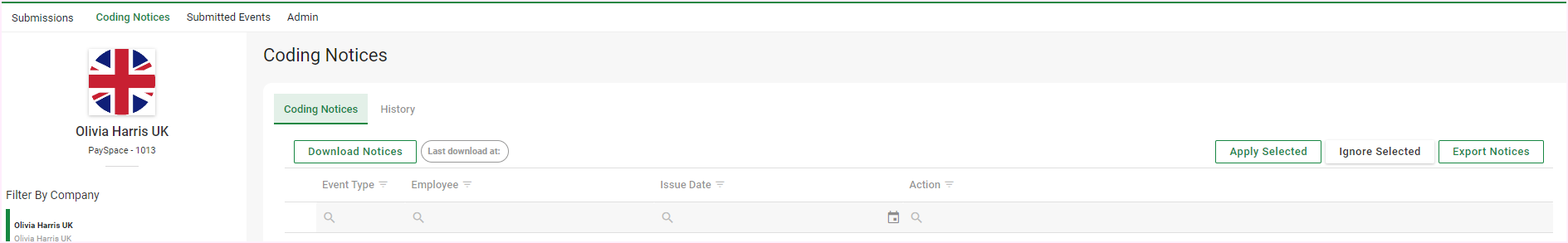 When accessing the RTI screen, an additional tab will open in your browser where the Coding Notices screen may be selected.