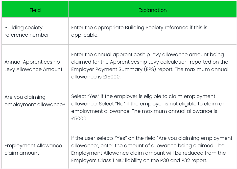 The PaySpace United Kingdom tax country includes custom fields in the Employer Payment Summary (EPS) Details section that need to be completed.