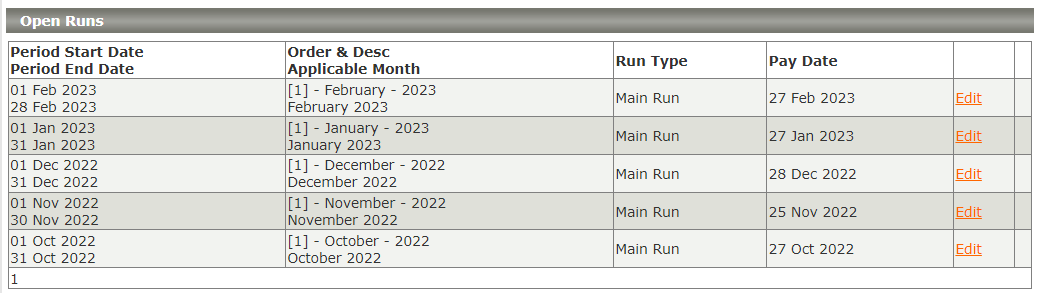 Navigate > Payroll Cycle > Payslip Pay Dates > Open Runs