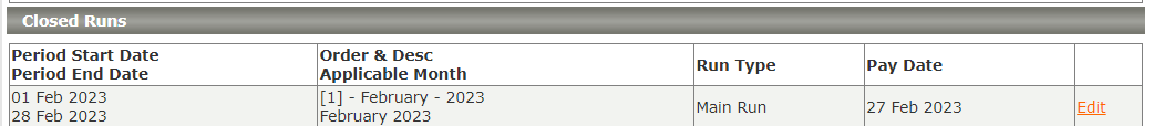Navigate > Payroll Cycle > Payslip Pay Dates > Closed