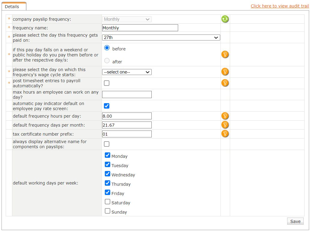 Overview Frequencies refer to the pay cycles within a company e.g. monthly, fortnightly or weekly. When a new company is added on the system, the frequencies are created. Thereafter, you can add more frequencies if necessary. If only one frequency ...
