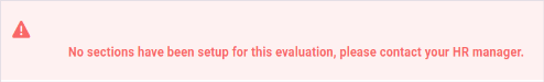 The error "No sections have been setup for this evaluation, please contact your HR manager" will display if no template sections have been created for the related performance evaluation.