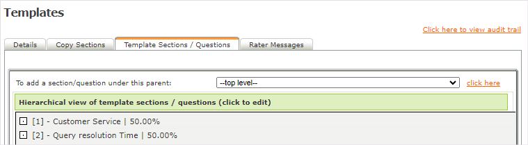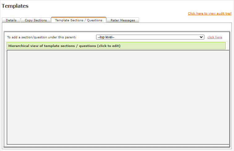 Step 3: Select the "click here" option to add Template Sections/Questions
