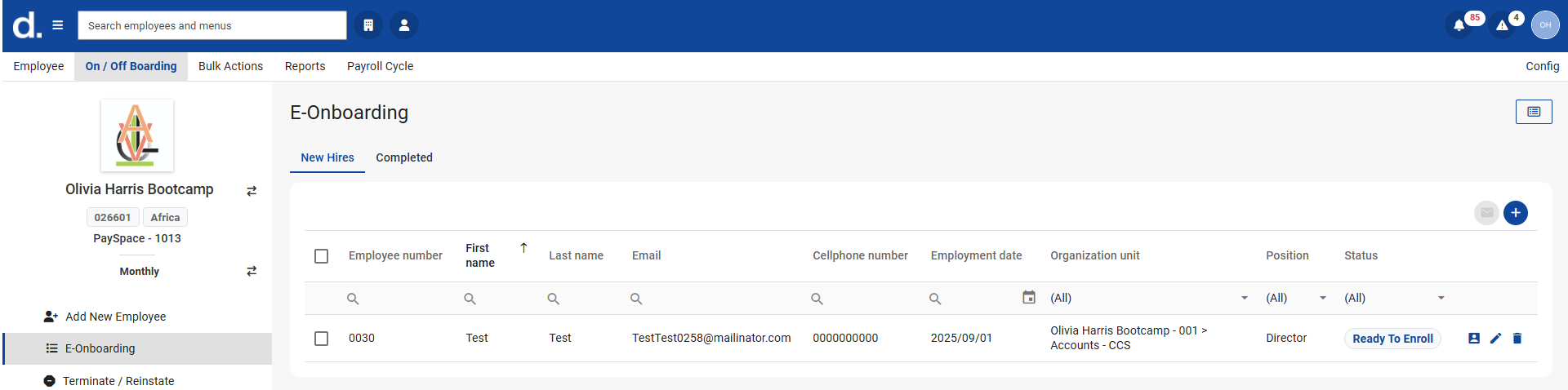 New hire records are saved per frequency. Navigating to a different frequency will only show the applicable new hires created in that frequency.