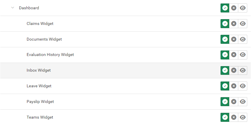 Select the green checkmark for the Inbox Widget permission and click on Update.