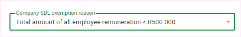 The Skills Development Levy (SDL) exemption is configured on company and employee level. Company level: If a company is exempt from contributing to SDL, select the applicable exemption reason on the Statutory Fields tab on the Basic Company ...