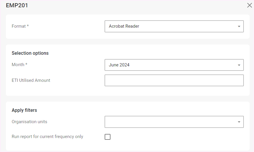 - Also check that no organisation units have been selected on the EMP201 report parameters screen.