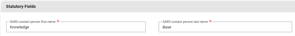 - The SARS contact person last name and first name on the company's Basic Information screen: Statutory Fields tab have not been completed.