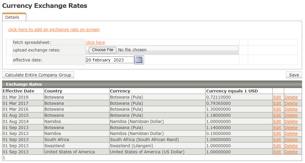 Important! The system uses a run's pay date on the Payslip Pay Dates screen and the exchange rate date from the Currency Exchange Rates screen to apply the correct exchange rate.