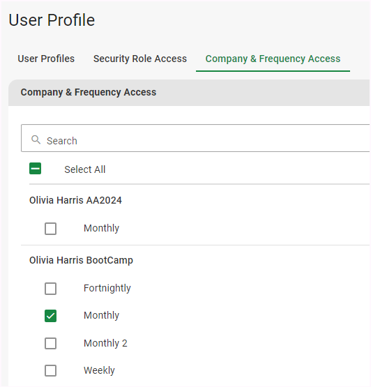 Step 1. The user would need to be granted access to the relevant company and frequency on the User Profile screen.