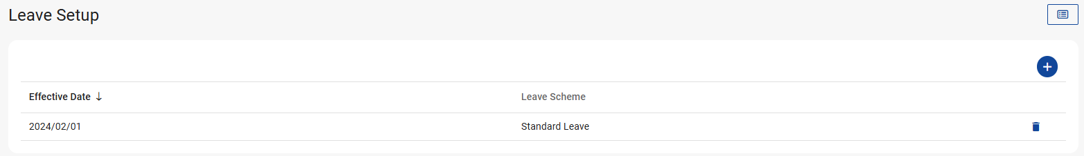 Step 1: Confirm the leave scheme's effective date on the Leave Setup screen.