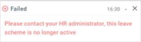 Why would a user receive the following error when trying to apply for leave "Please contact your HR Administrator, this leave scheme is no longer active"?