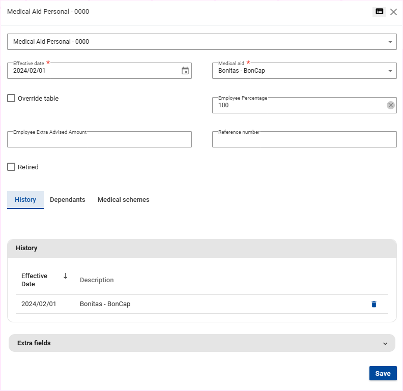The "Employee Amount/Percentage" field has to be completed in order for the personal medical aid component to reflect on the affected employee's Edit Payslip screen.