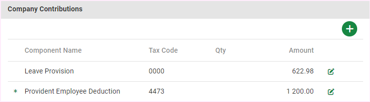 An employee's provident/pension fund employee deduction component will reflect as a company contribution if the component has been marked as "in package".