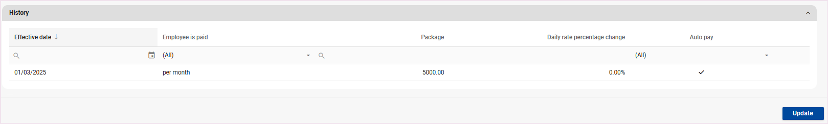 Navigate > Employee > Payroll Processing > Pay Rate Details > History