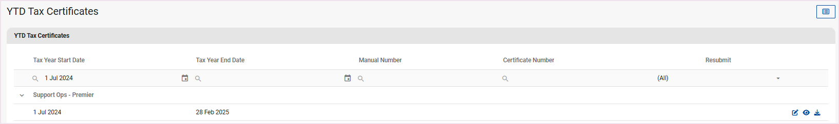 Navigate > Employee > Payroll Results > Tax Certificates / Historical Drill Down