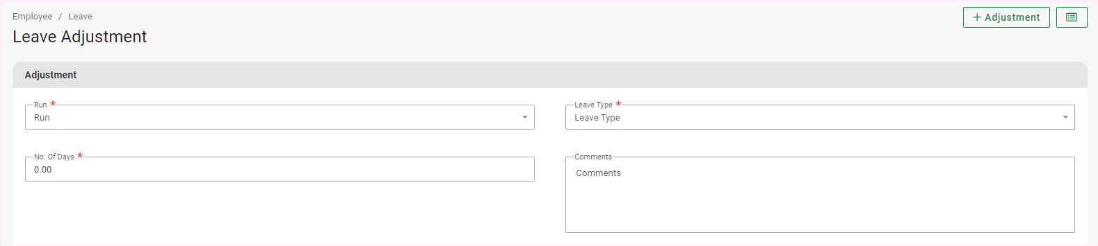 Alternatively, leave adjustments can be created via the Bulk Actions screen.