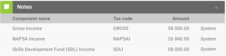 Step 2: Add the NAPSA Exemption component on the Notes section of an employee's Edit Payslip or Recurring Payroll Components screens.