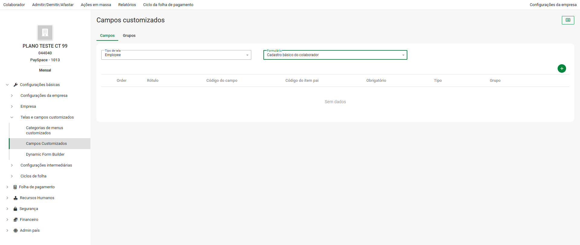 Configuração da empresa > Configurações básicas > Telas e campos Customizados > Campos customizados