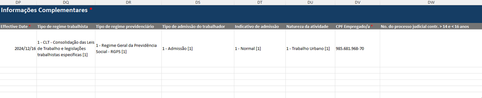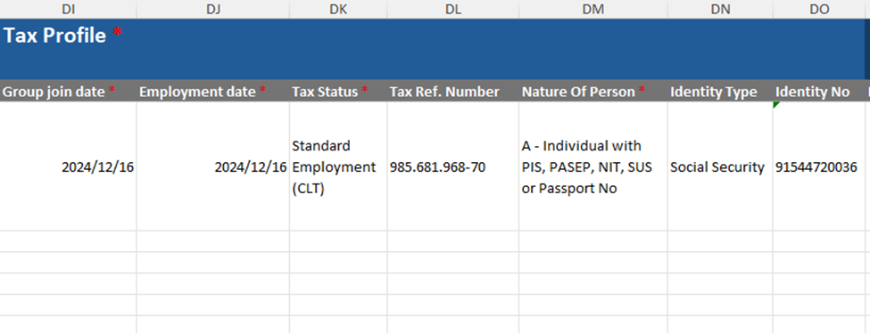 · Tax Ref. Number – nesse campo incluir o número do CPF do empregado com esse formato: xxx.xxx.xxx-xx