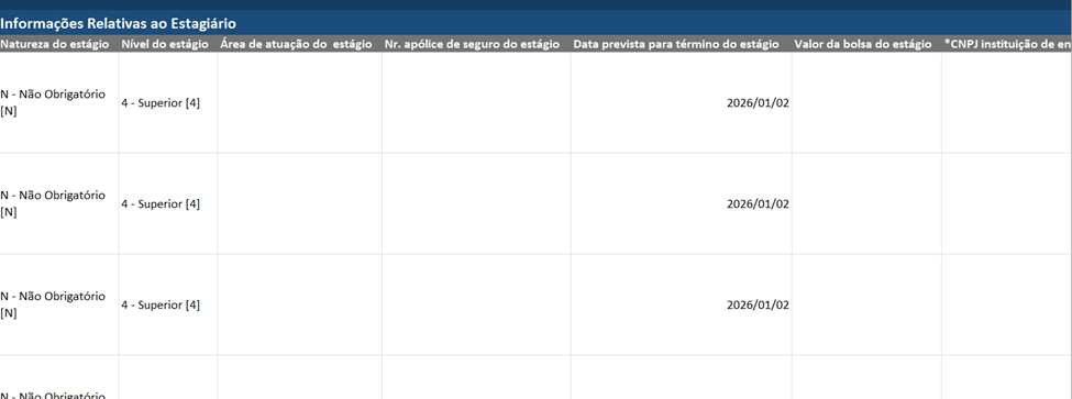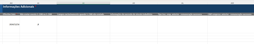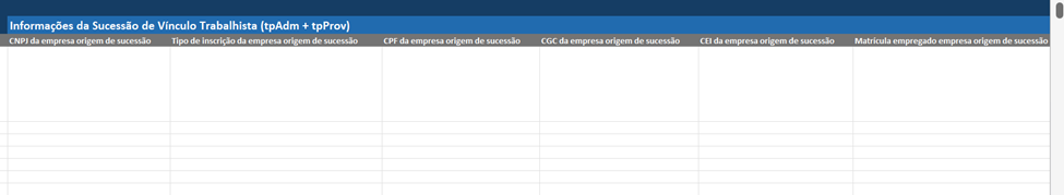 Campos não obrigatórios, caso haja informação sobre sucessão de vínculo trabalhista incluir as informações.