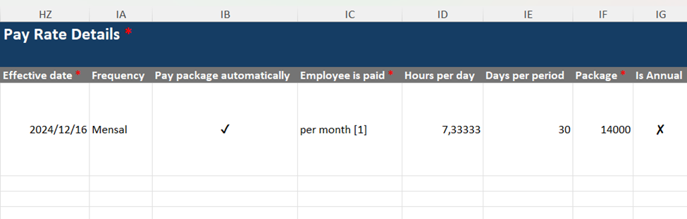 · Hours per day – incluir o valor da hora diária do salário do empregado;