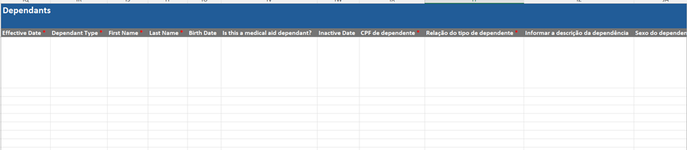 Caso o empregado haja dependente, incluir um dependente por linha.
