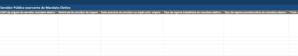 Campos não obrigatórios, mas caso haja informação sobre servidor público exercente de mandato eletivo preencher as informações: