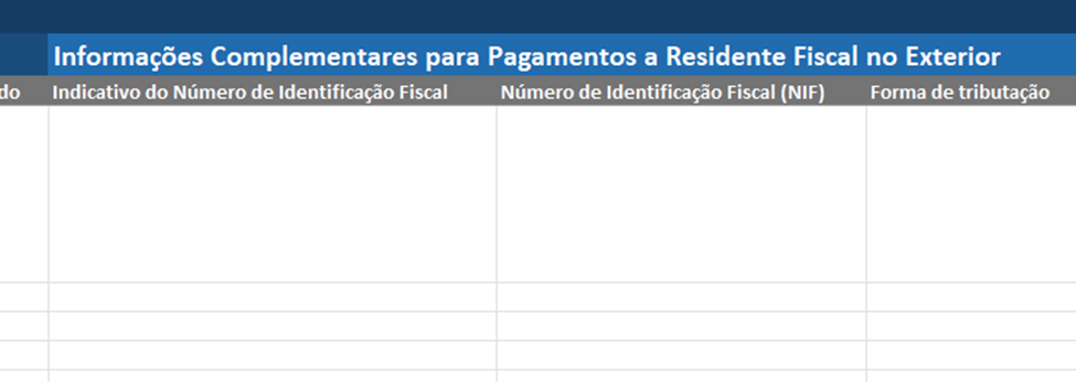 1.8 – Informações Complementares para Pagamentos a Residente Fiscal no Exterior