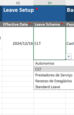 Incluir A data de admissão e a opção do Leave Scheme Iincluir de acordo com o vínculo trabalhista do empregado):