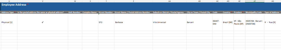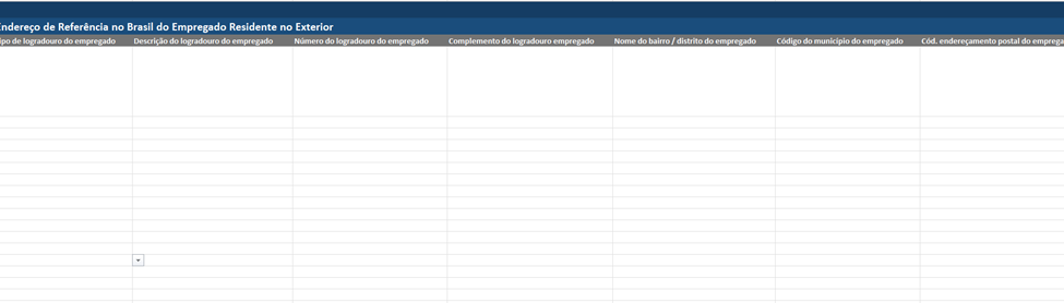 Caso tenha alguma informação sobre endereço de Referência no Brasil do empregado Residente no exterior, preencher essa parte da planilha: