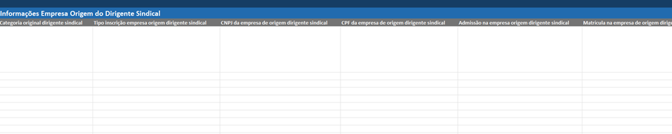 Campo não é obrigatório, mas caso haja informação de empresa Origem do Dirigente Sindical, é necessário preencher as informações.