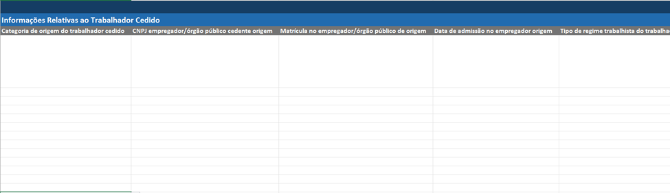 Campos não obrigatórios, caso haja informação sobre as informações relativas ao trabalhador Cedido, poderá preencher as informações.