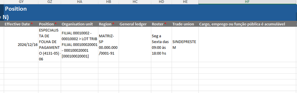 · Region – selecionar a opção de o empregado está vinculado a uma matriz ou filial;
