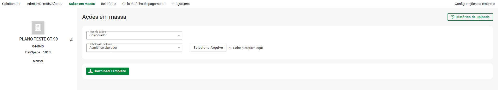 Navegue até o menu: Ações em Massa > Tipo de Dados > Selecionar ‘Colaborador ’.