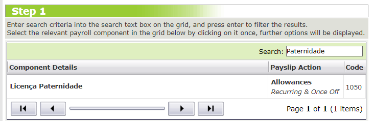 Navegar > Configuração > Folha de Pagamento > Configuração da Folha de Pagamento > Componentes da Folha de Pagamento