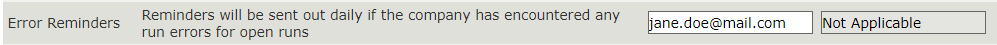 Insira um endereço de e-mail para o nome do processo Error Reminders . Este endereço de e-mail receberá uma notificação se algum erro for encontrado durante a execução aberta.