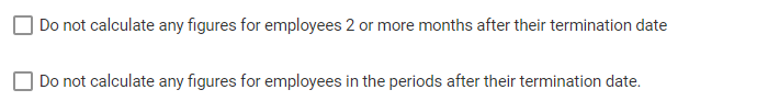 O sistema pode ser configurado para interromper o processamento de dados da folha de pagamento de funcionários demitidos imediatamente ou até dois meses após a data de rescisão.