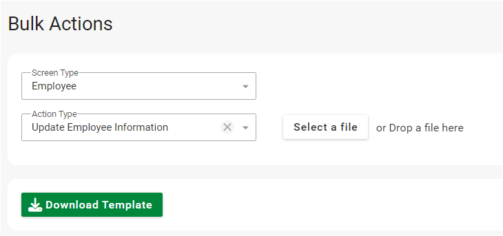 Se os números de funcionários não forem gerados pelo sistema, os números de funcionários existentes poderão ser atualizados no modelo usando o tipo de ação Atualizar informações de funcionários na tela Ações em massa .