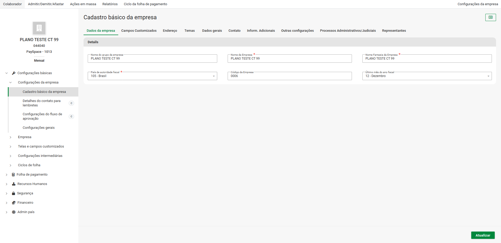 Configurações da empresa > Cadastro básico da Empresa > Dados da Empresa