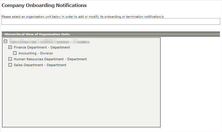 Etapa 1: selecione a unidade organizacional relevante para modificar suas notificações de integração ou encerramento.