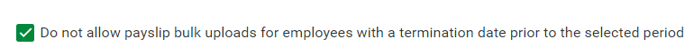 Para excluir funcionários demitidos ao configurar dados nas telas de funcionários por meio da tela Ações em massa , ative a configuração de cálculo " Não permitir uploads em massa de contracheques para funcionários com data de demissão anterior ao período selecionado ".