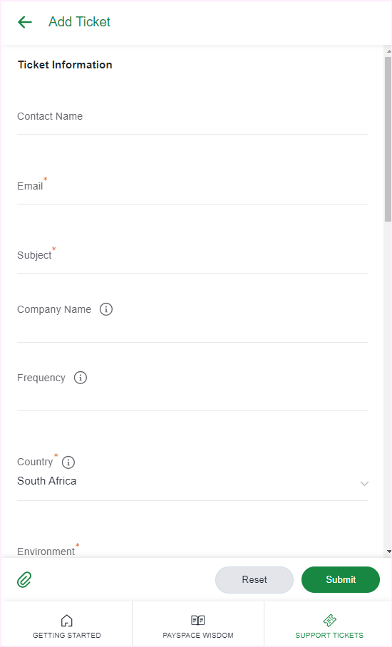 Um tíquete de suporte pode ser enviado diretamente do sistema.