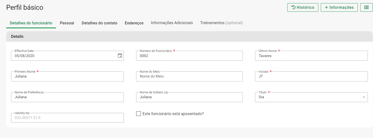 Navegue > funcionário (perfil encerrado) > informações básicas > perfil fiscal
