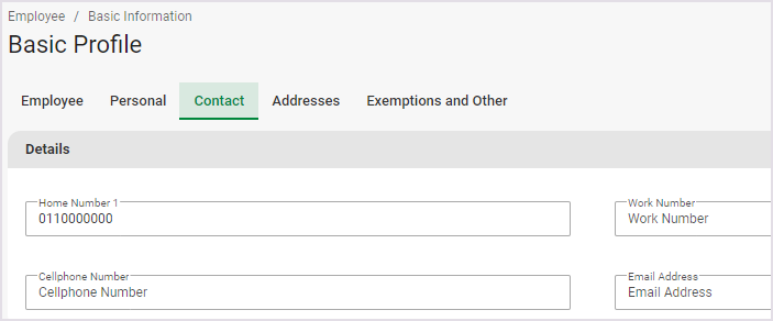 Os funcionários precisam se registrar com o número de celular capturado na guia Detalhes de contato na tela Perfil básico.